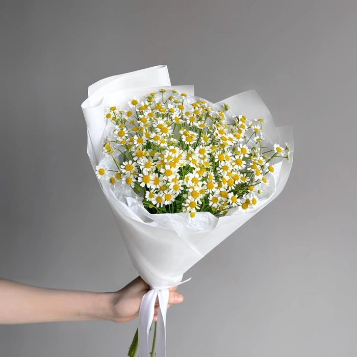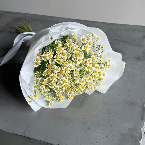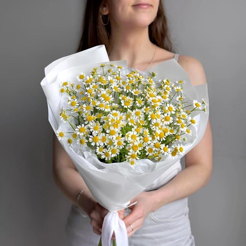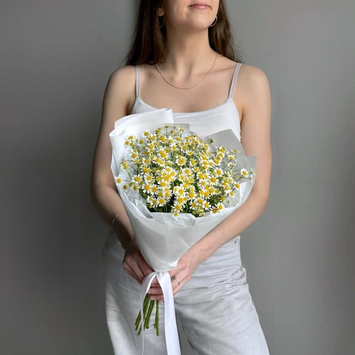 Нежный букет из кустовых голландских ромашек, словно кусочек летнего луга, подарит ощущение легкости и романтики. Семь изысканных матрикарий в дизайнерской упаковке создадут атмосферу уюта и природной красоты в любом интерьере.